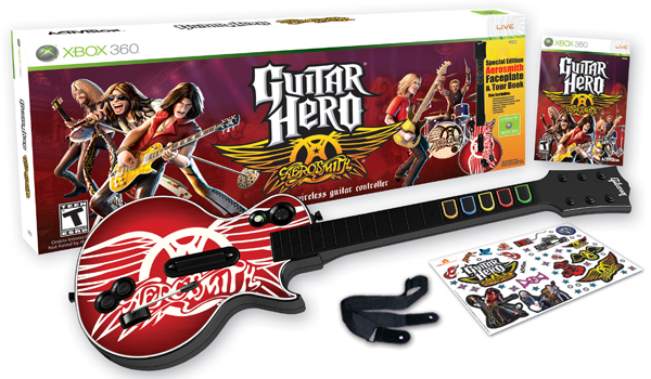 Guitar Hero: Aerosmith that are now available for pre-order. Each bundle will come packaged with a guitar controller, an exclusive Aerosmith faceplate, an Aerosmith tour book, and the game itself. Prices will be as follows: